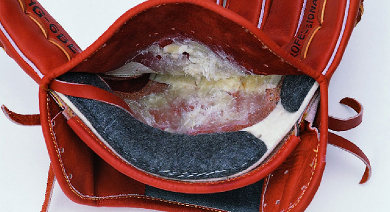 プロが使うキャッチャーミットの多くには、座ブトンスポンジが付いています。