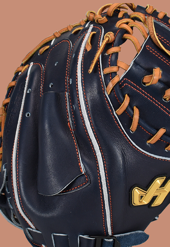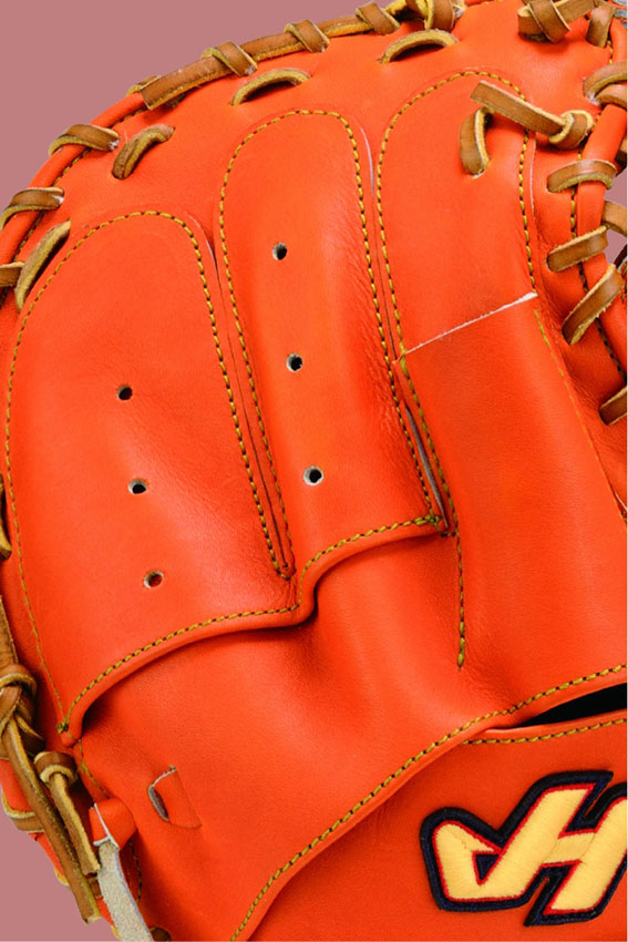 キャッチャーミットの甲の蛇腹状のデザインは、キャッチャーミットならではの“掴む”動きを円滑にするための形。