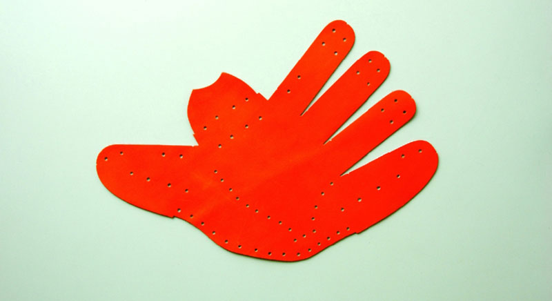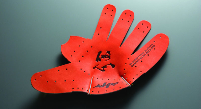 掴む動きを円滑にするハタケヤマ独自の構造「Shellarmove」とU字にハミダシを入れることで甲側がヘタリにくく、指入れ内部には当て革を入れる事でフィット感をアップさせました。