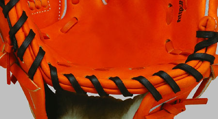中央部で編目をクロスさせる事により、親指・子指共に外側に広がりやすくなります。これにより、グラブの間口が広がり、打球が入りやすくなります。